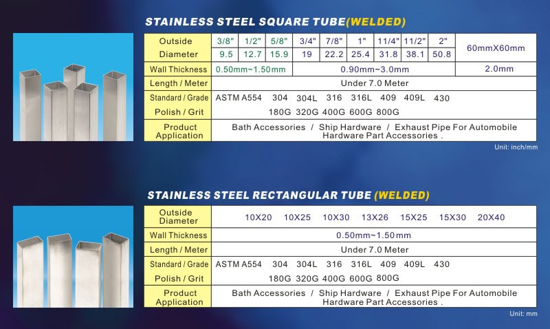Ornamental stainless square tubing is our specialty at BUILD UP HARDWARE CO., LTD. We stock inventories of 304/304L and 316/316L ornamental stainless tubing.